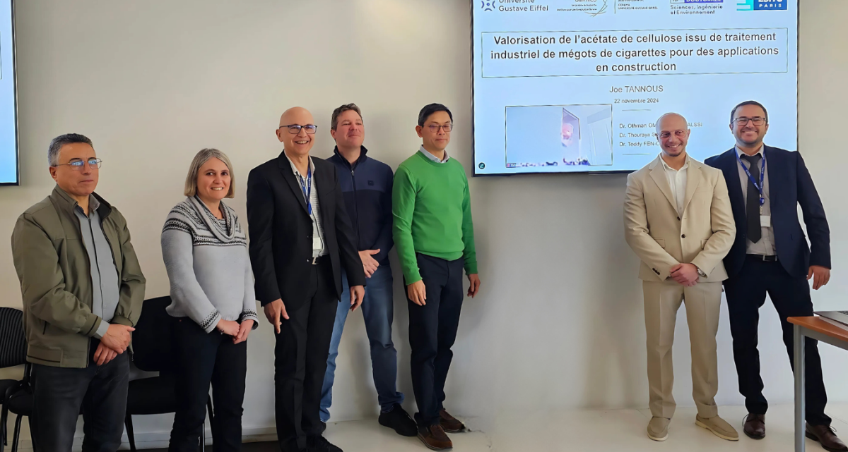 Le 22 novembre 2024, Joe Tannous, doctorant de l’ESITC Paris, a présenté sa thèse de doctorat sur un sujet novateur mêlant recyclage et construction : « Valorisation de l’acétate de cellulose issu de traitement industriel de mégots de cigarettes pour des applications en construction. »